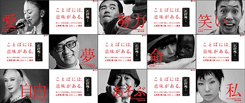 最後が、岩波書店の広辞苑 第六版のポスター。10年振りの改訂ということで話題になった。ネット時代にも辞書の言葉の重みを各界の偉人達の言葉と共に紹介している。