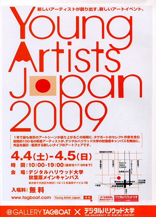 2009年4月4−5日に秋葉原のデジタルハリウッド大学にてタグボートがセレクションした100名の若手アーティストによる展示即売会が開催された。101 TOKYO会場前ということもあり、ちょっとのぞいてみた。