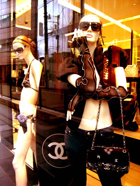 友人の結婚披露宴が六本木ミッドタウンのリッツカールトンであったので、原宿からゆっくり歩いて現地まで行った。まず、現在ではキラなイタリア老舗ブランド(1967年創業) FIORUCCI の懐かしい広告カードを購入。シャネルは、不良っぽい女性たち。アルマーニのショーウィンドウは、サングラスの透明人間だった!