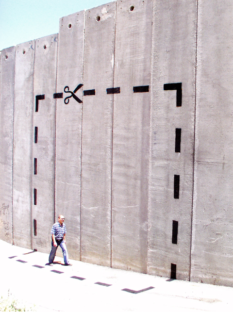 2007年12月、ヨルダン川西岸地区のベツレヘムにおいて、分離壁などにステンシル画6点を残した。