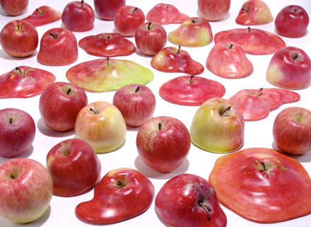 雨宮庸介「knowledge」2006-2007 林檎実物大/油彩、プラキャスト、木、地塗り材
