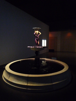 中 = ツエ・スーメイ「語られた多くの言葉」(Undo)。黒いインク塗れの噴水に慄然とたつ小便小僧?