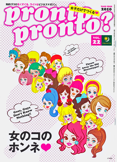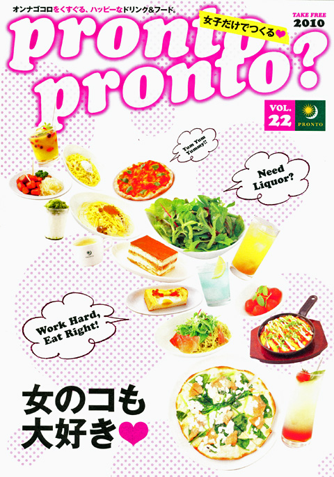 女子だけでつくる[pronto pront ?] vol.22 2010銀座から築地のオフィスまで歩いていると途中に、コーヒーチェーンの「プロント」がある。何気なく通り過ぎようとすると、気になるフリペ発見。なんとも、80年代っぽいポップな絵柄の表紙に釘付けになった。