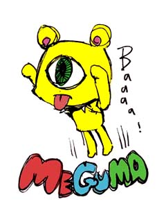 一番、左の明治製菓「きの山さん」は、デハラユキノリさんの傑作である。デハラさんは、渋谷パルコの展示を見て以来のファンで、一緒に仕事をするようになった。その右隣は、こなつが書いた内藤みかさんの「パン屋の娘」というケータイ小説の挿絵である。こなつの作品は、新宿のFEWMANYの原画を見たときに、好きになった。真ん中は、ペロ太。銀座の真ん中で日夜キュートなイラストを作り続けているカピパラさんてお馴染みのトライワークスが制作した。そして、うなずきんの たけだゆきえさんの「らっきょ漂流記」のらっきょ君。そして、一番、右がTAKAKOの作った「めグマ」だ。数年前、TAKAKOがラクガキのように描いた一枚の絵にピンときた。これは、戦後目玉オヤジに独占されていた「目玉」キャラ市場を脅かすほどの存在になるのではないか、と期待している。