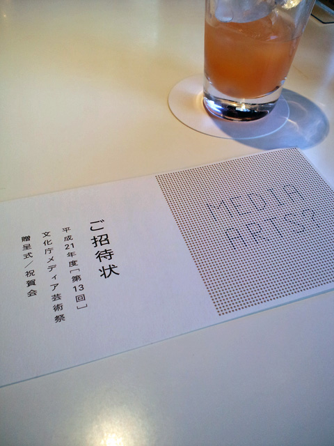 平成21年度[第13回]文化庁メディア芸術祭2010年2月2日、文化庁メディア芸術祭の内覧会/贈呈式/祝賀会に招待されたので行ってきた。というのも、先述の通りソニー・デジタルの出版ビジネス第一号である寺田めぐみの「煩悩美人図鑑」がマンガ部門で審査員推薦作に選出されたのである!やった!
