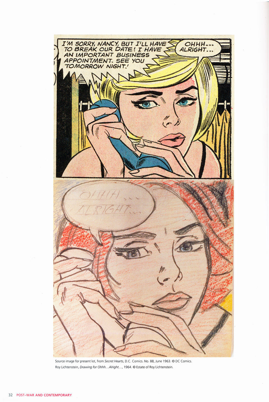 このカタログの表紙を飾るロイ・リキテンスタインの「Ohhh...Airight...」(1964)のリソースについてもしっかりと分析され書かれている。この作品はDC Comicsの「Secret Hearts」(#88 - 1963)からインスピレーションを得たとある。こういうメタ情報が作品を"好き"という以上にコレクターを満足させるメタ情報になっているのだ。