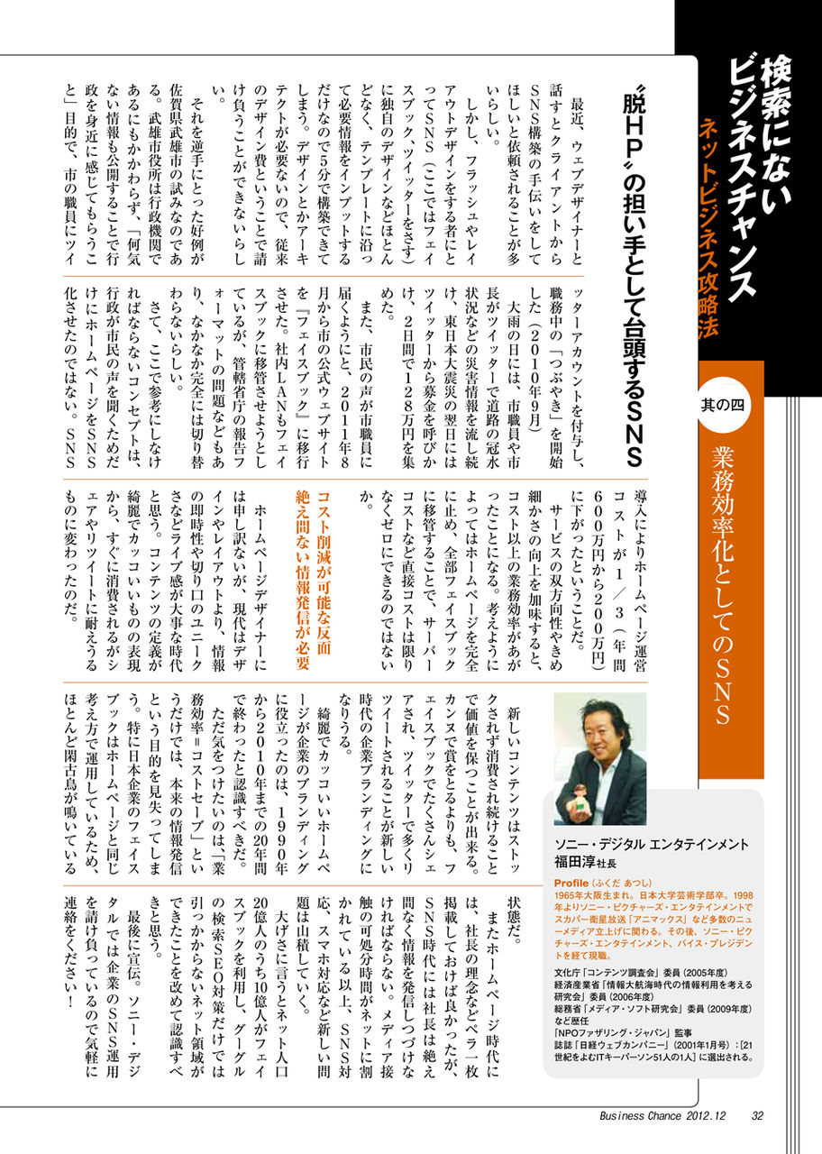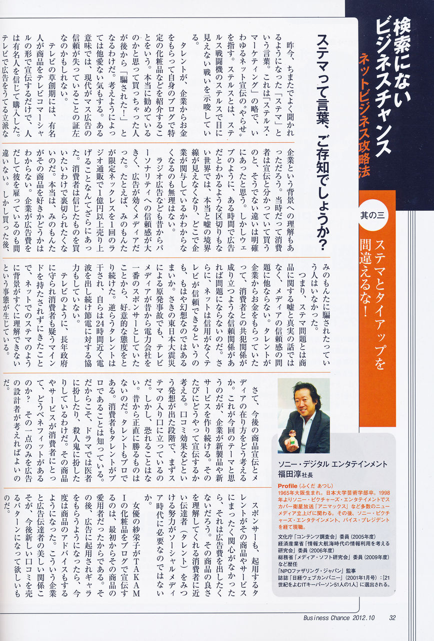 雑誌【ビジネスチャンス】(2013年 06月号)福田淳 対談コーナー「検索にないビジネスチャンス」メディアプロデューサーの小林弘人さんと!