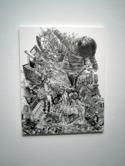 大量のピンクチラシをコラージュして花の咲いた樹を描いてみせた「鶯谷図」(1990年)などは、アイロニカルな“美” を感じる。携帯普及の前世代で電話ボックスの奇妙な世界観を共有したものが、その卓抜した発想に美しさを感じることができる。