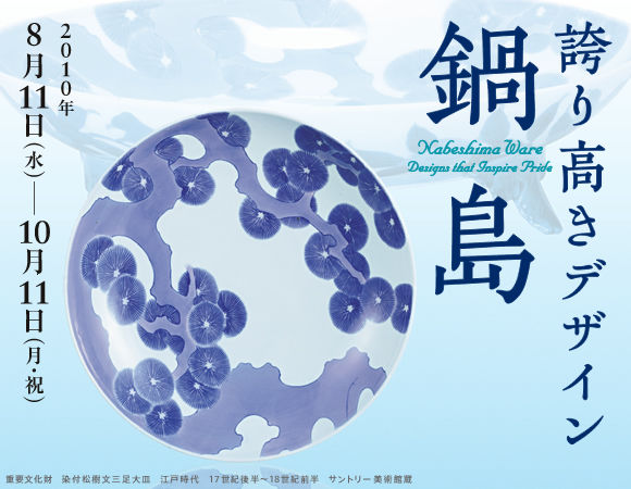 鍋島は、江戸時代に佐賀藩から徳川将軍家や諸大名への贈り物として作られた最高級の磁器。染付を基本として、赤、緑、黄の色絵や青磁釉がおりなす世界は、人々を魅了してきた。四季花鳥の皿は、近世磁器の中でも鍋島の地位を代表する作品である。一方、桃・宝尽くしなどの吉祥柄や、壺・糸巻・組みひも・本・水車・ウサギまでモチーフに使う鍋島デザインは、斬新である。