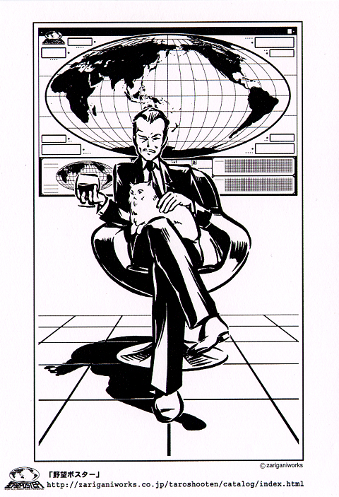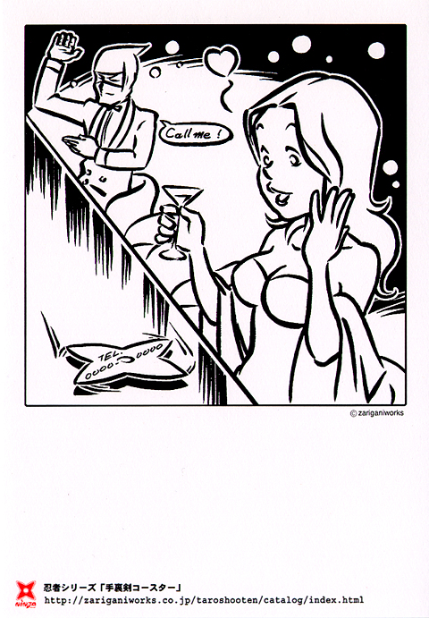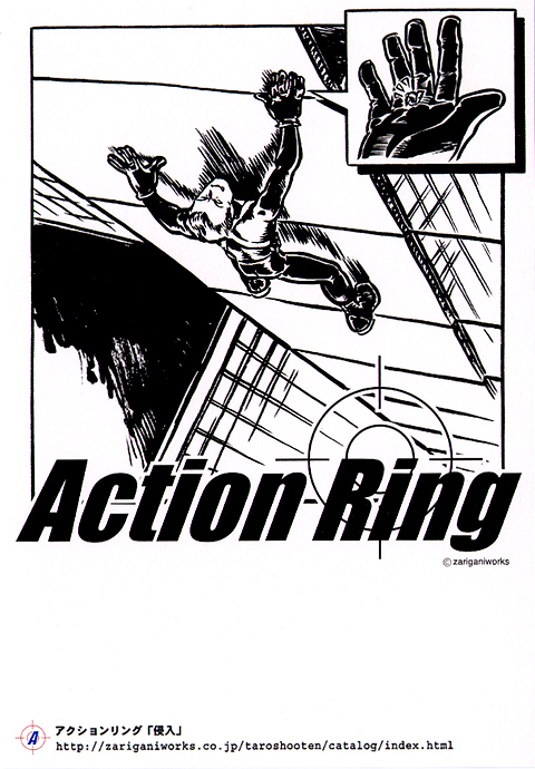 今回、改めて注目したいのが、ザリガニワークスの作品が面白かった。左から「手裏剣コースター」「アクションリング『進入』」「野望ポスター」など子どもの時の夢を思い出すラインナップである。