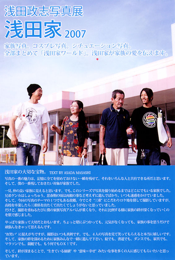 今回は、いよいよ浅田家以外のコンセプトで出張家族撮影のシリーズがはじまった。数ヶ月前に浅田さんから、この撮影で全国津々浦々に出向くのが楽しいといっていた。たくさんの家族があって、たくさんの芝居がある。その撮影のための芝居は本当の家族にしか演じられない芝居であることが写真をみれば明らかである。