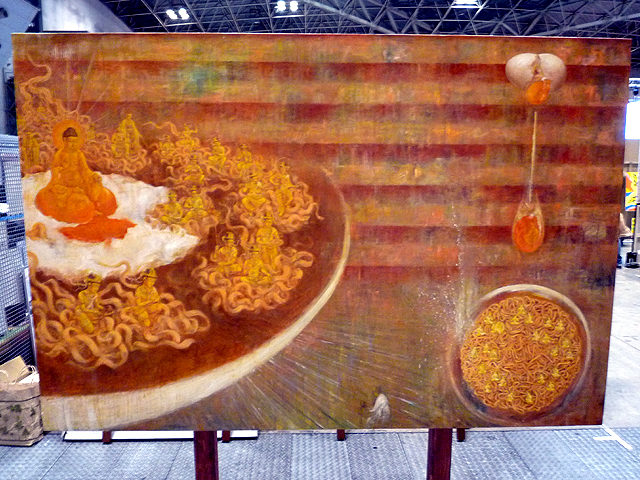 笹田晋平さんの作品との出会いは、2009年3月のGEISAIまでさかのぼる。カップラーメン創業者の安藤百福へのオマージュ作品は、大型で緻密でユニークなものだった。
