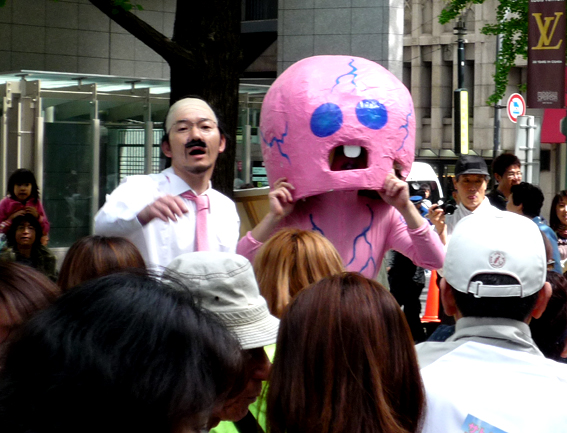 知る人ぞ知る、メンペのライブペインティングが大阪御堂筋で開催された。メンペの金子ナンペイ会長とデハラユキノリ副会長の競演によるライブは、寒の戻った心斎橋そごう前で、5月11日に路上で厳かに行われた。